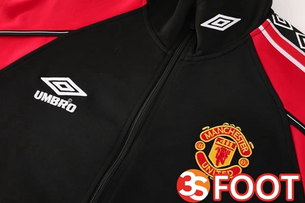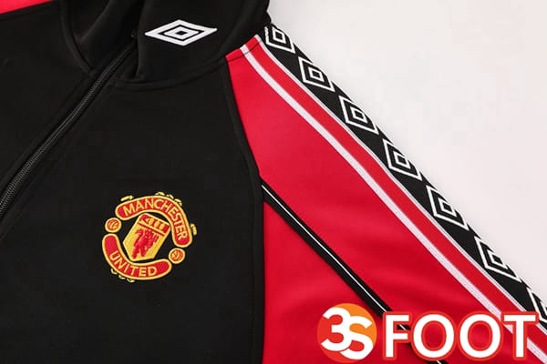 Ensemble Veste Survetement De Foot Manchester United Noir Rouge 2025/2026